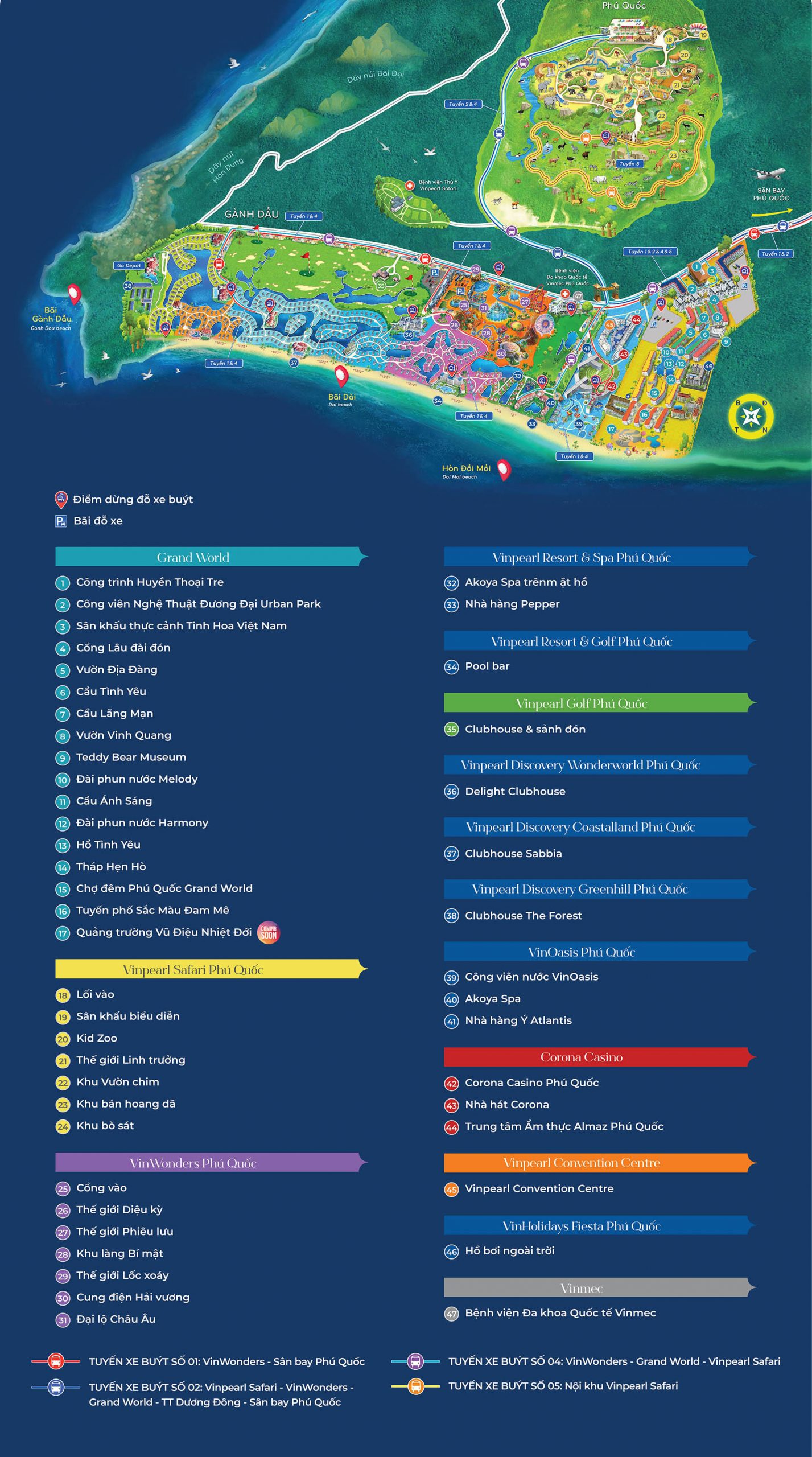Hiếm có siêu dự án nghỉ dưỡng nào có quy mô rộng lớn tới 1044ha, với đầy đủ hệ thống tiên ích đẳng cấp và đa dạng: như Sân Golf, Vinpearl Safari, Vinwonders, Vinpearl Resort, Grand World,… đây là quần thể nghỉ dưỡng bậc nhất Đông Nam Á, và trở thành một điểm đến của du khách trên bản đồ du lịch thế giới.